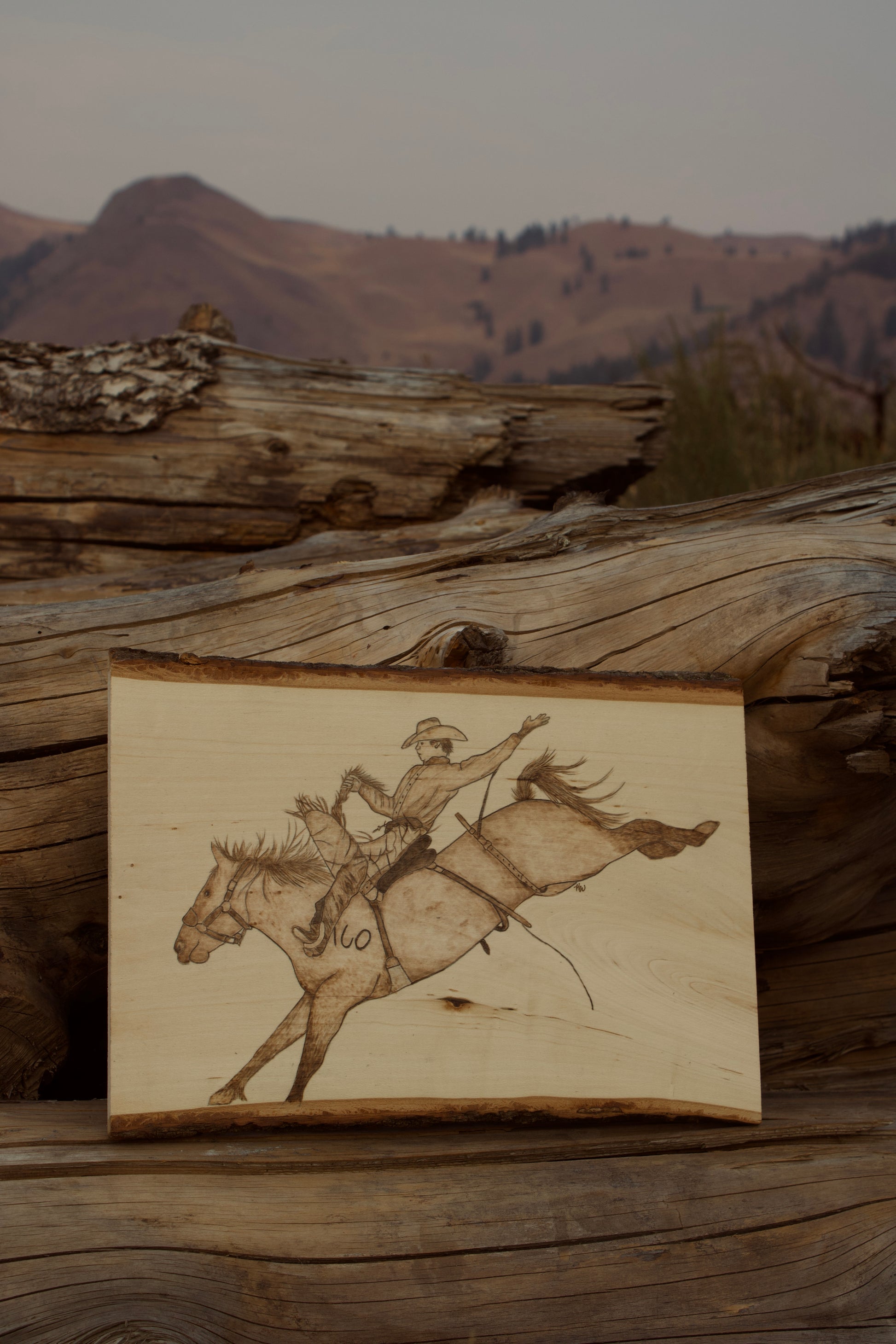 Bronc Rider Pyrography Piece